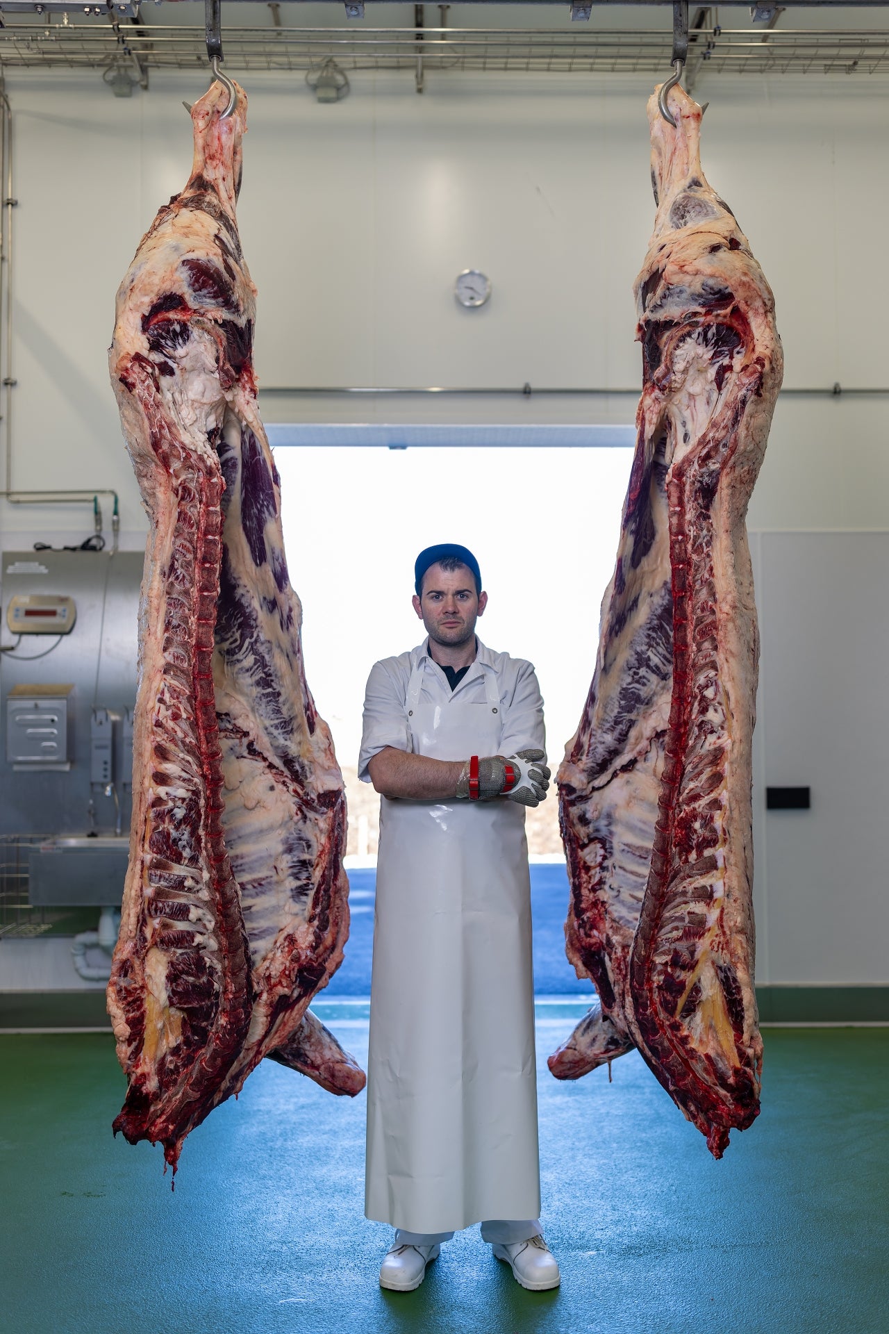Geschlachtet wird direkt am Hof in unserer eigenen Metzgerei, wo jede Woche nur eine überschaubare Anzahl an Tieren verarbeitet wird. Die kurzen Wege zwischen Stall und Schlachtung reduzieren Stress, schonen die Tiere und sorgen für eine Qualität, die man später auf dem Teller schmeckt. In der Produktion wird jeder Cut von Hand zugeschnitten, gereift und veredelt, statt industriell vom Band zu laufen. Durch die wöchentliche Schlachtung können wir besonders frische Produkte anbieten und gleichzeitig verantwortungsvoll mit jedem einzelnen Tier umgehen.